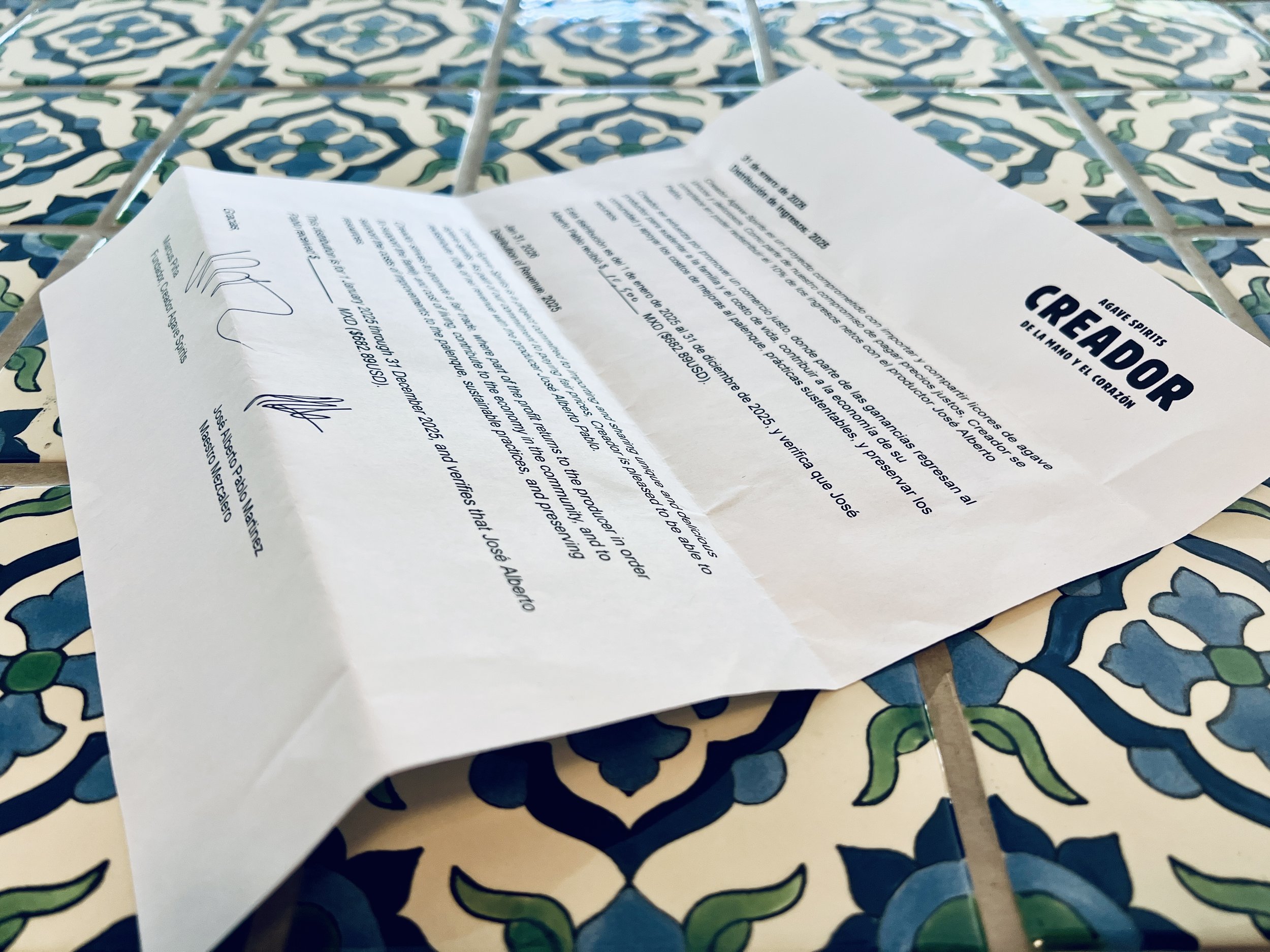 Creador Agave Spirits is a project committed to importing and sharing unique and delicious agave spirits. In addition to our commitment to paying fair prices, Creador is pleased to be able to redistribute 10% of revenue to producer José Alberto Pablo. The original intent was to pay a portion of profits. The reality for this small, independent company is that starting up carries significant costs, and net profits, after all start up costs are paid, can be a ways off. However, there is revenue, and a shift to focus on sharing revenue, portioning out startup costs over time, allows for a share of cashflow ahead of schedule.